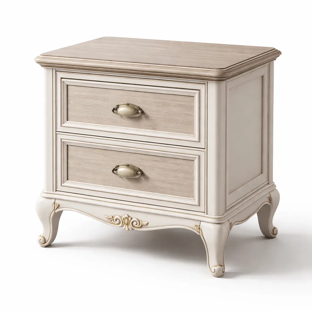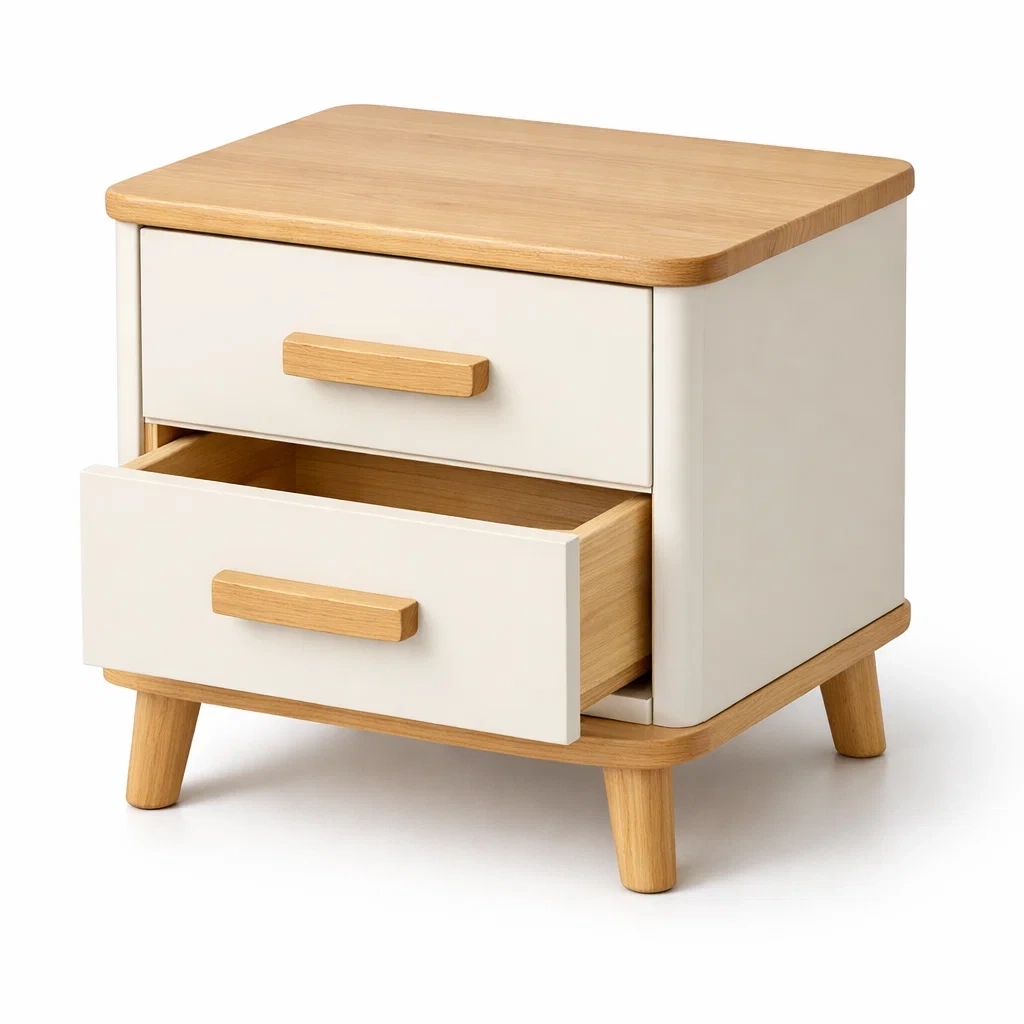 Nachttisch aus holz beige mit 2 schubladen